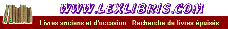 L'Ex-Libris Description du site : Livres anciens et d'occasion. Atelier reliure. Recherche de livres épuisés. Nombreux thèmes en ligne. Site : http://www.lexlibris.com E-mail : bouquinerie@lexlibris.com